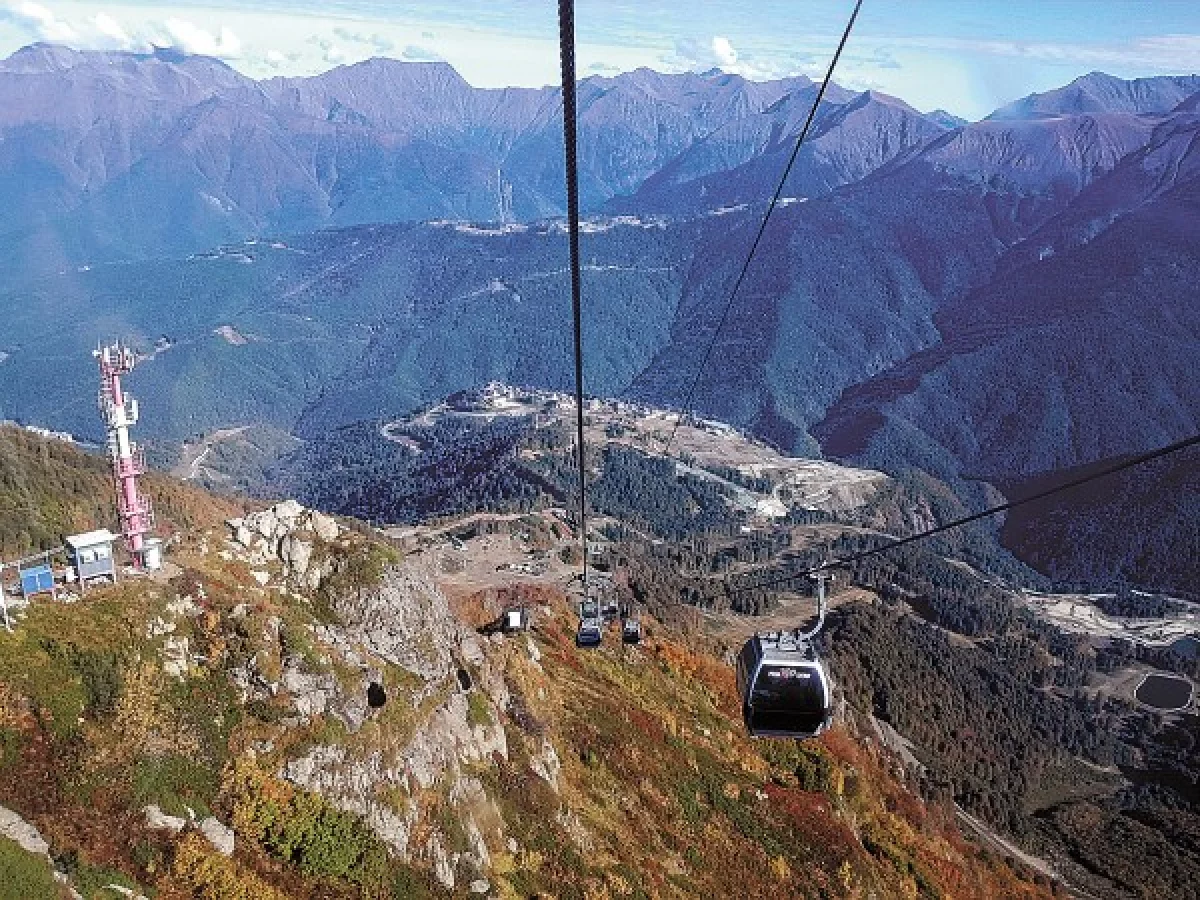 Великолепные виды открываются и когда поднимаешься на фуникулёре: Кавказские горы, тоннели, долины, олимпийские объекты.