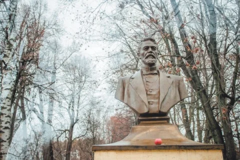 Липовый парк оголён. Пожухлые листья шуршат под ногами. Сквозь ветки деревьев просматривается бело-серая старинная усадьба. По всему её фасаду проходят огромные полосы-трещины. На покорёженной двери висит ржавый замок.