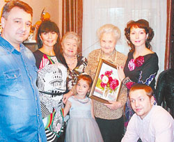 Человек с удивительной судьбойНаша бабушка (на самом деле уже прабабушка, но зовём мы её Милочкой) Людмила Александровна Данильцева — человек удивительной судьбы. В самом начале Великой Отечественной войны она закончила медицинское училище, ушла на фронт добровольцем и была в строю до самой Победы. Именно поэтому с самого раннего детства она нас всех учила радоваться каждому дню жизни, несмотря ни на что. Именно поэтому, укачивая детей, внуков, а теперь и правнуков, она поёт душевные военные песни. Она вообще удивительно добрый и чуткий человек. Несмотря на свой возраст, очень активно участвует в жизни всей нашей семьи, всегда в центре событий, даёт ценные советы и заботится обо всех родных. А нас в семье — целый десяток. Когда рождались девочки, она учила их всему, особенно житейской мудрости. К её советам прислушиваются по сей день. Ещё она умеет веселиться, очень заразительно смеётся. И, когда бабушка весёлая, глаза у неё становятся задорными и ярко-голубыми. Глаза у неё вообще особенные, их блеск не гаснет, даже если бабушке взгрустнётся! Значит, и душа у неё молодая. А это дано не каждому человеку, хотя каждый должен к этому стремиться. И если это невозможно физически, то оставаться молодой в душе у нашей Милочки получается. Она умеет радоваться жизни! Пусть ваш праздник станет для неё ещё одним поводом для этого. Инна Купенко, Елена и Антон Шутовы, Алишер, Виктория, Денис и Василина Гулюкины. |