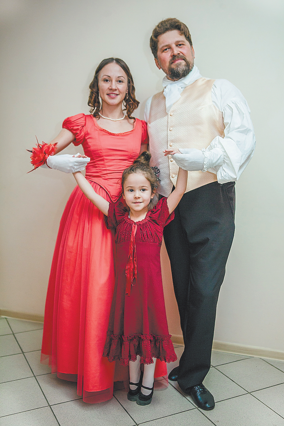 — Я шью костюмы всей семье, и моей настольной книгой стало пособие по кройке и шитью Карла Берриса, — говорит Оксана. — В ХIХ веке пышные наряды с несколькими юбками пришли на смену платьям в стиле ампир. По одной из версий, женщины носили их, чтобы привлечь внимание мужчин, и со временем эти платья стали похожи на ночные сорочки. В 1818 году Наполеон запретил этот «ужас». А у мужчин главной деталью всегда был галстук-платок. Они соревновались, кто завяжет самый необычный и красивый бант.