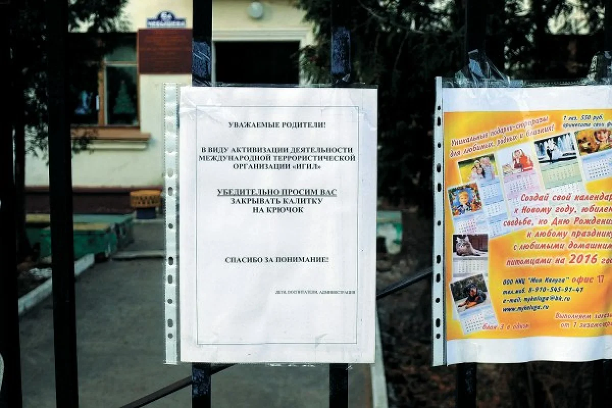 На прошлой неделе в Интернете появилось фото необычного объявления на калитке одного из детских садов Калуги. В нём родителей просят закрывать калитку на крючок «ввиду активизации международной террористической организации ИГИЛ*». Подписано оно было «Дети, воспитатели, администрация».