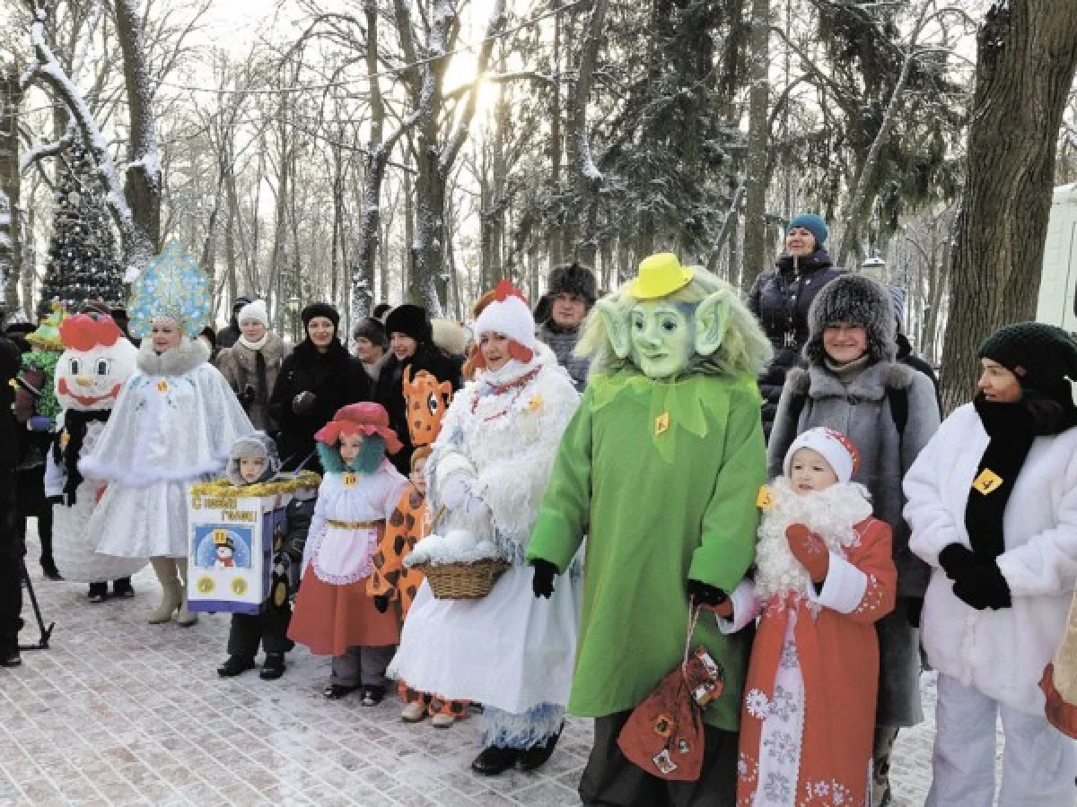 На новогодний карнавал собрались и дети, и взрослые. Самому маленькому участнику — полтора годика.