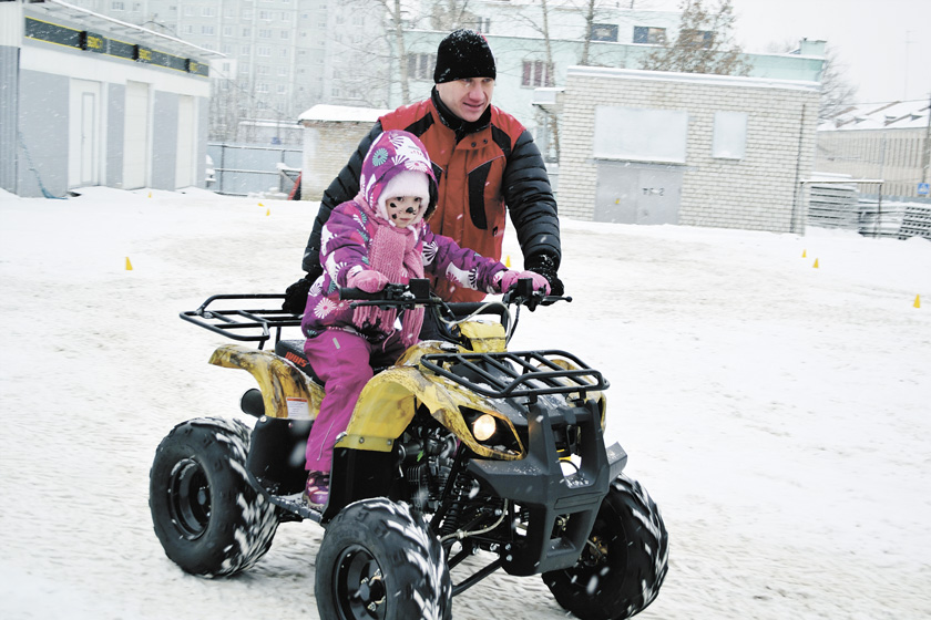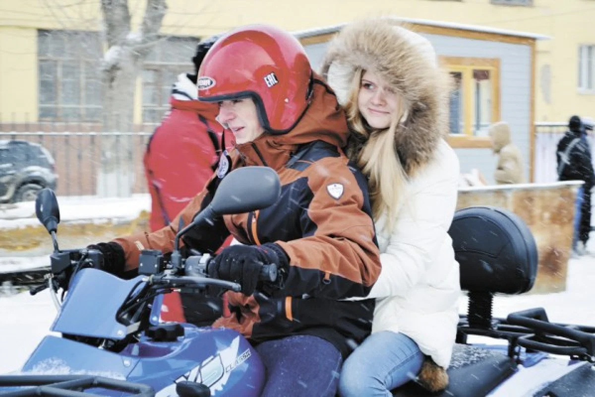 В субботу, 9 января, на улице Салтыкова-Щедрина, 76, яблоку негде было упасть. На праздник «Квадропурга» пришли и дети, и взрослые. Ведь протестировать мототехнику мог любой желающий. Для малышей и их родителей подготовили специальные трассы. Кроме того, гостей праздника угощали чаем из самовара и кашей из «полевой кухни». Ребятня водила хороводы со сказочными персонажами, а старшее поколение в это время смотрело трюки мотоциклистов на снегу.