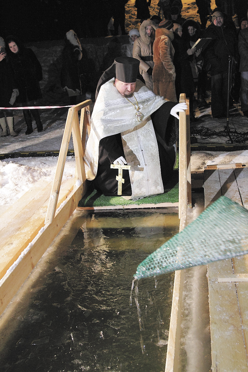 — Теперь все желающие окунуться могут это сделать,— зычным голосом заявляет священник, окропив присутствующих святой водой.