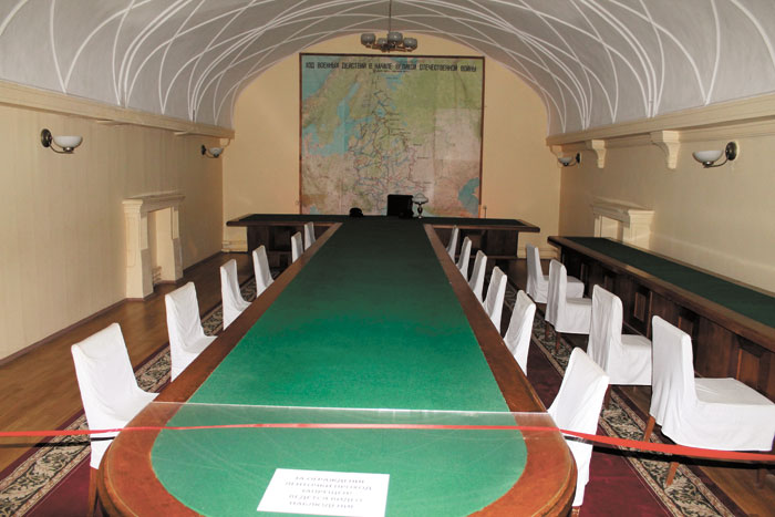 В этом маленьком зальчике в случае захвата Гитлером Москвы должен был работать генштаб войск СССР.