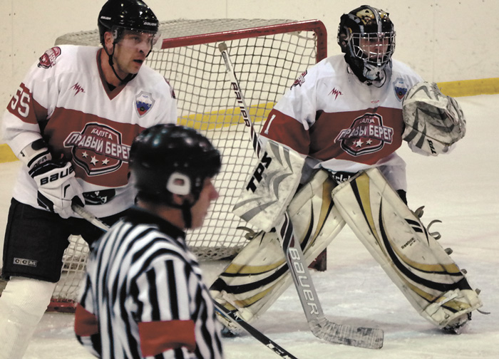 Третий период начался с ураганных атак «правобережцев». Видимо, бело-красные берегли свои силы. Хотя и не казалось, что хоккеисты «Правого берега» отдавали все силы без остатка. Играли спокойно, без суеты и нервотрёпки. Лишь изредка Юрий Пронькин (№ 4) делал негромкие замечания партнёрам. Счёт сравнял Максим Костяев (№ 23) на восьмой минуте. А спустя две минуты под радостные крики болельщиков Алексей Ватулин (№ 55) забросил победную шайбу.