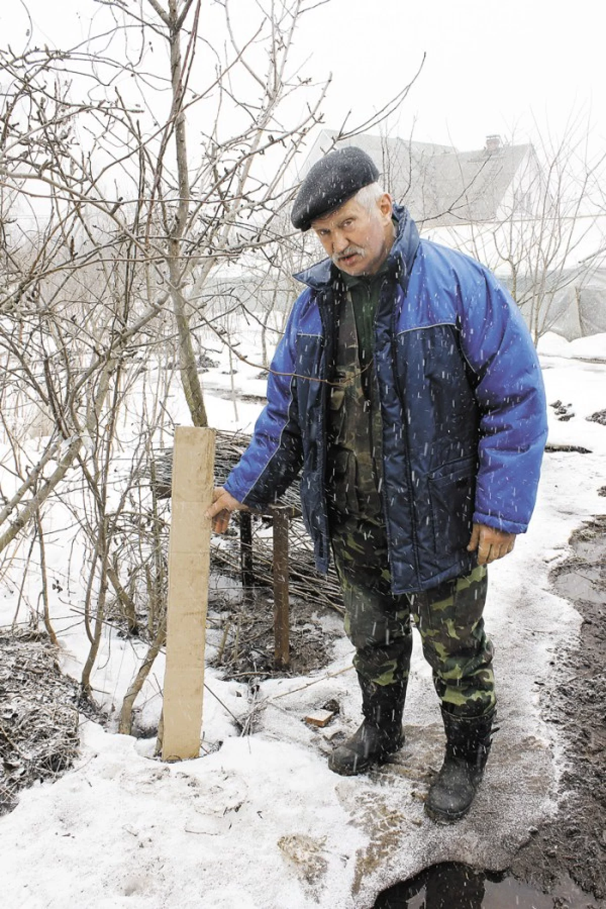 Можно ещё с осени защитить деревья, установив «заборы». Для этого подойдут старые доски, куски шифера.