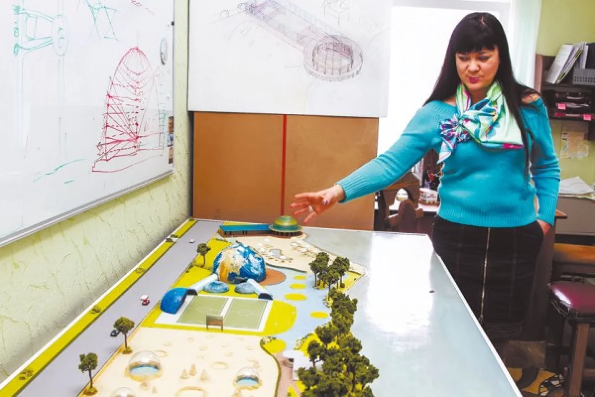 - Парк будет состоять из трёх зон: пляжной, спортивной и развлекательной,- объединённых космической тематикой,- увлечённо рассказывает Ольга.- Вот пляжная зона с детским «лягушатником». Здесь же - кафе «Сатурн». Вот этот объект, расположенный в центре и выполненный в виде земной сферы,- клубный ресторан «Земля». Его высота - 15 метров, в диаметре конструкция составляет 25 метров. Она имеет 4 уровня. Сразу за ней - спортивная площадка, которая может использоваться для игр в волейбол, мини-футбол, а также для проведения различных мероприятий и концертов. Затем начинается зона свободного творчества, её рабочее название - «зона Марса». Здесь можно проводить соревнования по пляжному волейболу, мастер-классы для детей. Вот это - территория «аватар-леса», где можно будет посидеть, погулять. Планируем разбить здесь сеть пешеходных дорожек. Далее - понтон, пристань для катеров, лодок, две баньки. Хотим также сделать кафе на воде.