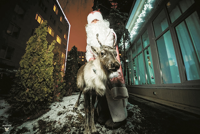 В прошлом году он поражал малышей появлением овечки, в этом — северного оленя: как только заканчивалось представление с хороводами вокруг ёлки, чтением стихов и вручением подарков, Дед Мороз звал ребят на улицу. К восторгу малышей, около подъезда их ждал сюрприз — настоящий северный олень, на котором, по преданию, и приехал волшебник.