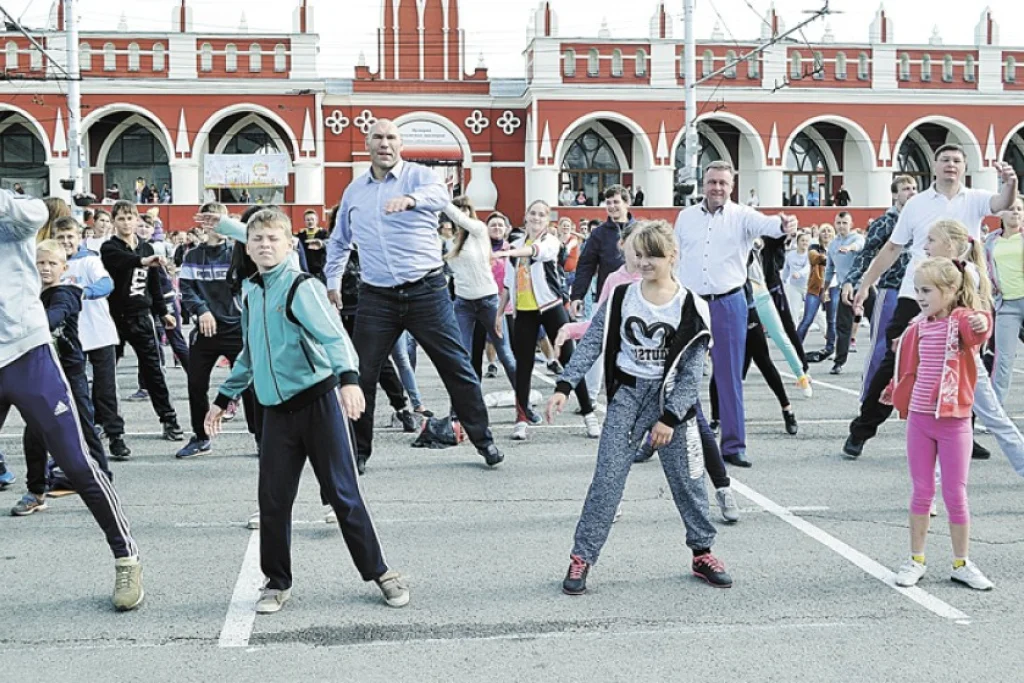 Николай Валуев, пробираясь сквозь ряды калужан и давая рекомендации, как нужно делать движения, направился к зданию областной администрации. Люди хлынули за ним