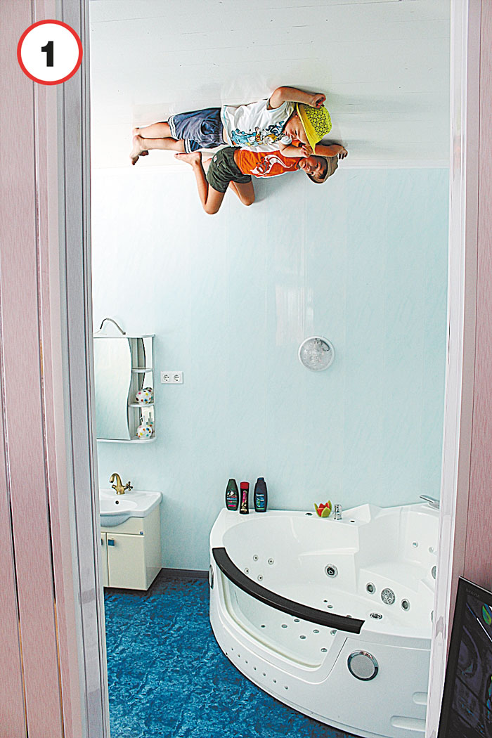 — На фото мои дети — Костя и Рома. Этим летом мы всей семьёй ездили на море. Когда купаться стало нельзя из-за шторма, мы пошли в «Дом вверх дном» — там все вещи расположены вверх «ногами». Дети были в диком восторге!