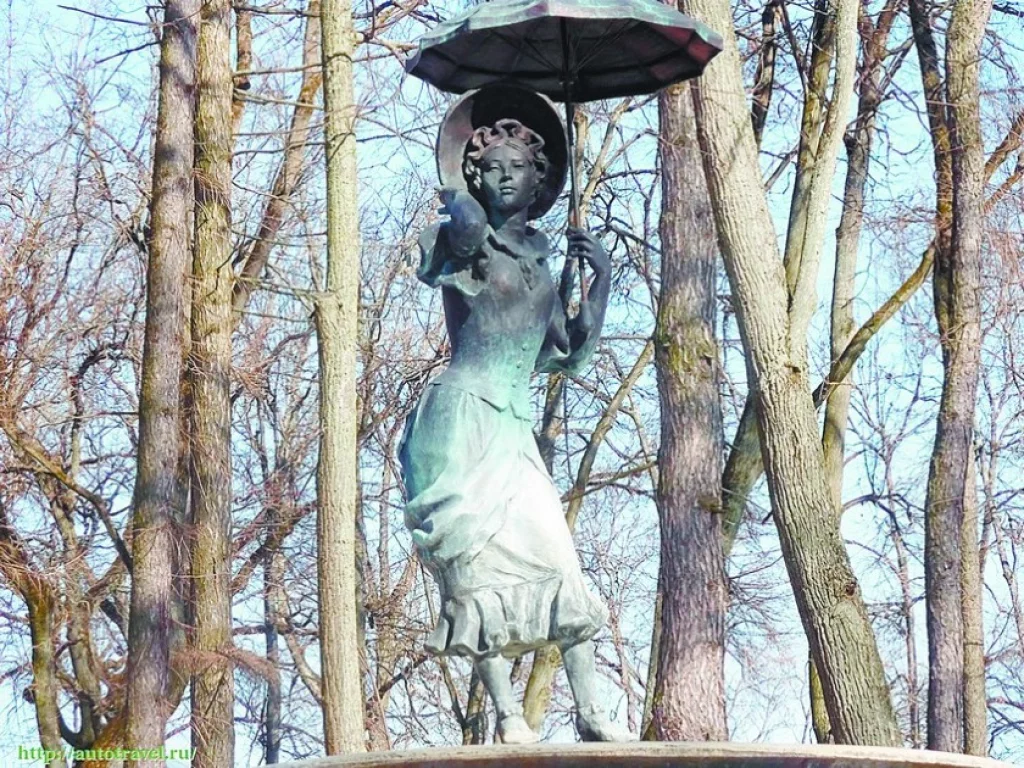 Перед началом Первой мировой войны в Городском саду появилась знаменитая бронзовая фигурка «Девушка с зонтиком». По преданию, скульптуру привёз из Будапешта один калужский купец после лечения. Он посетил там публичный дом, у входа в который его очаровала бронзовая статуэтка девушки-кокетки с зонтиком. Эту изящную фигуру он купил и подарил Калуге. Бронзовый подлинник скульптуры был похищен немцами при оккупации города в 1941 году. Сегодня фонтан парка украшает её копия, воссозданная по фотографиям.