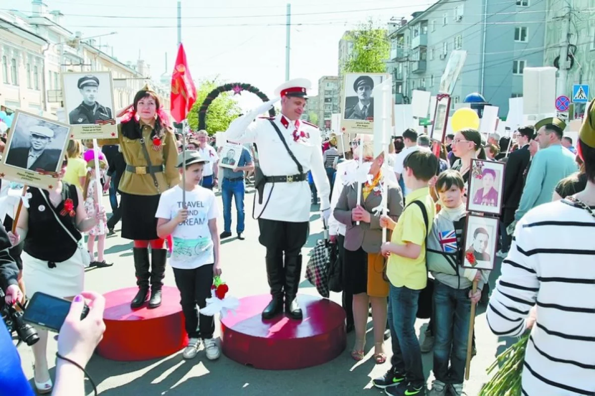 На свой праздничный пост 9 Мая Григорий Ханаев заступает примерно в 9:30. И находится на нём минимум до часу дня, а то и до двух, если погода позволяет. Сначала приветствует участников шествия, а после него становится объектом многочасовой фотосессии, которая проходит в режиме нон-стоп. То есть практически в неподвижном положении Григорий пребывает около 3–4 часов, - и это независимо от того, какая на улице погода! Моя младшая дочь, когда мы в составе колонны «Бессмертного полка» проходили мимо Григория Ханаева, глядя на него, восхищённо произнесла: