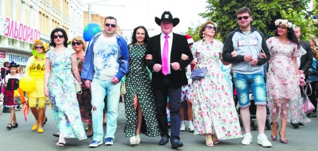 Со стороны улицы Кирова стояли живые статуи, среди которых была и «копия» скульптуры Циолковского с велосипедом. А пешеходная часть Театралки в этот день превратилась в гастрономический рай: здесь проходили фестивали сладостей и мороженого.