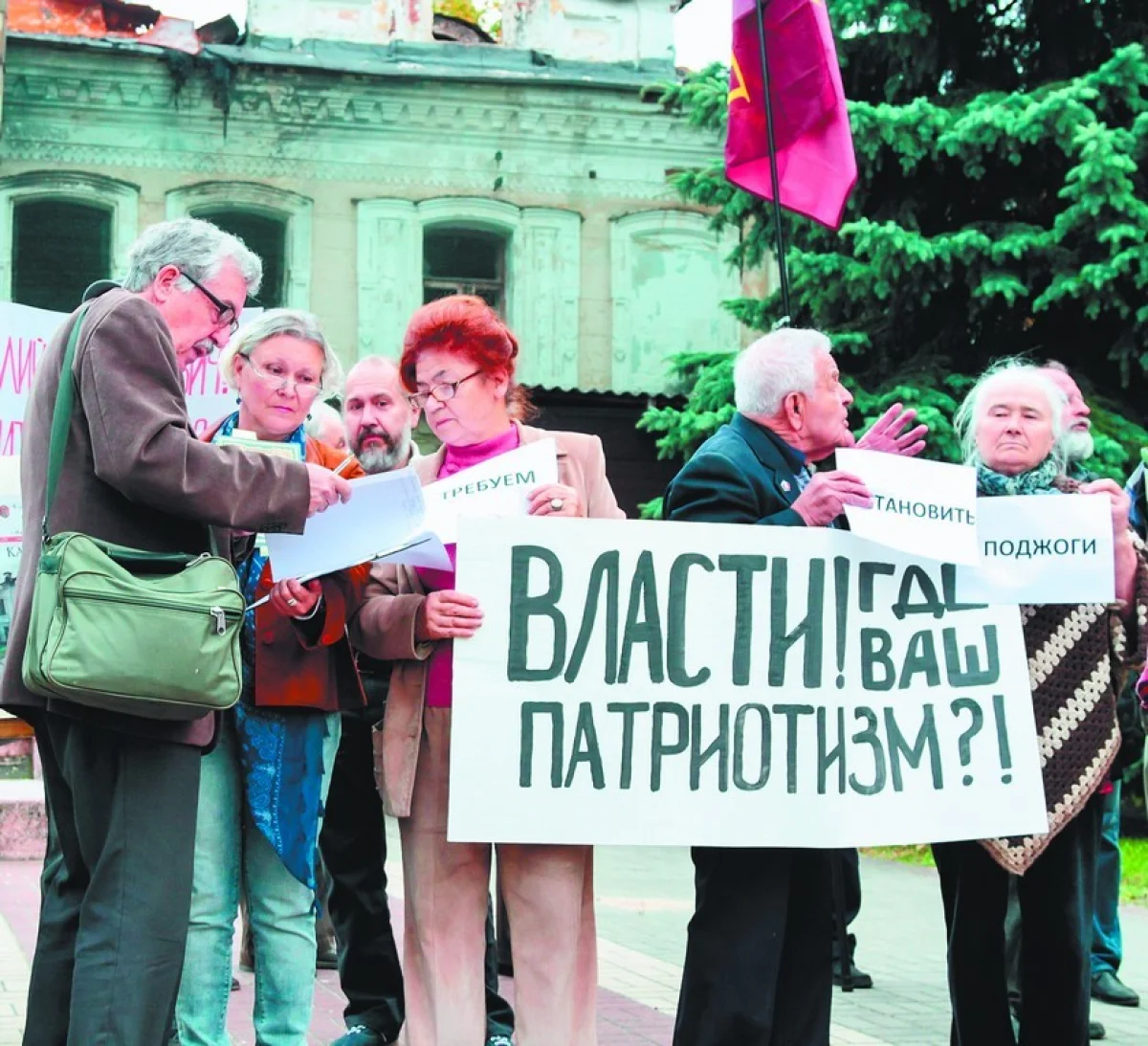 Неравнодушных людей оказалось, увы, немного: человек 20 тех, кто развернул плакаты, и примерно столько же сочувствующих. Ни громких речей, ни каких-либо призывов во время акции не звучало, поскольку заявлена она была как пикет, а не как митинг. Сами краеведы назвали своё мероприятие тихой демонстрацией. На самодельных транспарантах участники обозначили свои основные требования к власти: остановить поджоги старых домов, призвать к ответственности Управление ЖКХ за непроведение мероприятий по консервации объектов культурного наследия, изыскать средства на реализацию программы «Старый город», восстановить Дом Билибиных и Дом городского головы Ципулина. Ещё одно требование - создать экспертную комиссию из числа калужских историков, краеведов, юристов, архитекторов, которая будет участвовать в принятии решений о судьбе того или иного историко-культурного памятника. Сейчас они нередко принимаются на основе заключений, сделанных приглашёнными экспертами.