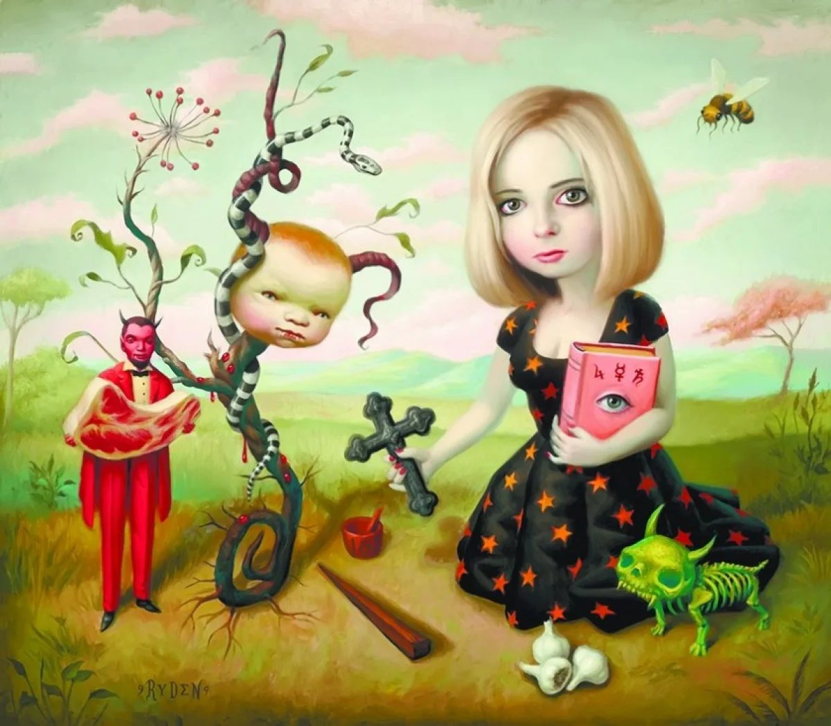 В последний год ХХ века американский художник Марк Райден нарисовал картину, которую назвал «Slayer» («Убийца»). Название явно диссонировало с главным персонажем картины — девушкой нарочито ангельской внешности, которая, как со временем оказалось, как две капли воды похожа на… Наталью Поклонскую. Мистические совпадения на этом не заканчиваются: за спиной девушки-«Поклонской» виднеются горы, которые можно рассматривать как намёк на Крым, а над её головой изображена пчела — символ с герба Симферополя.