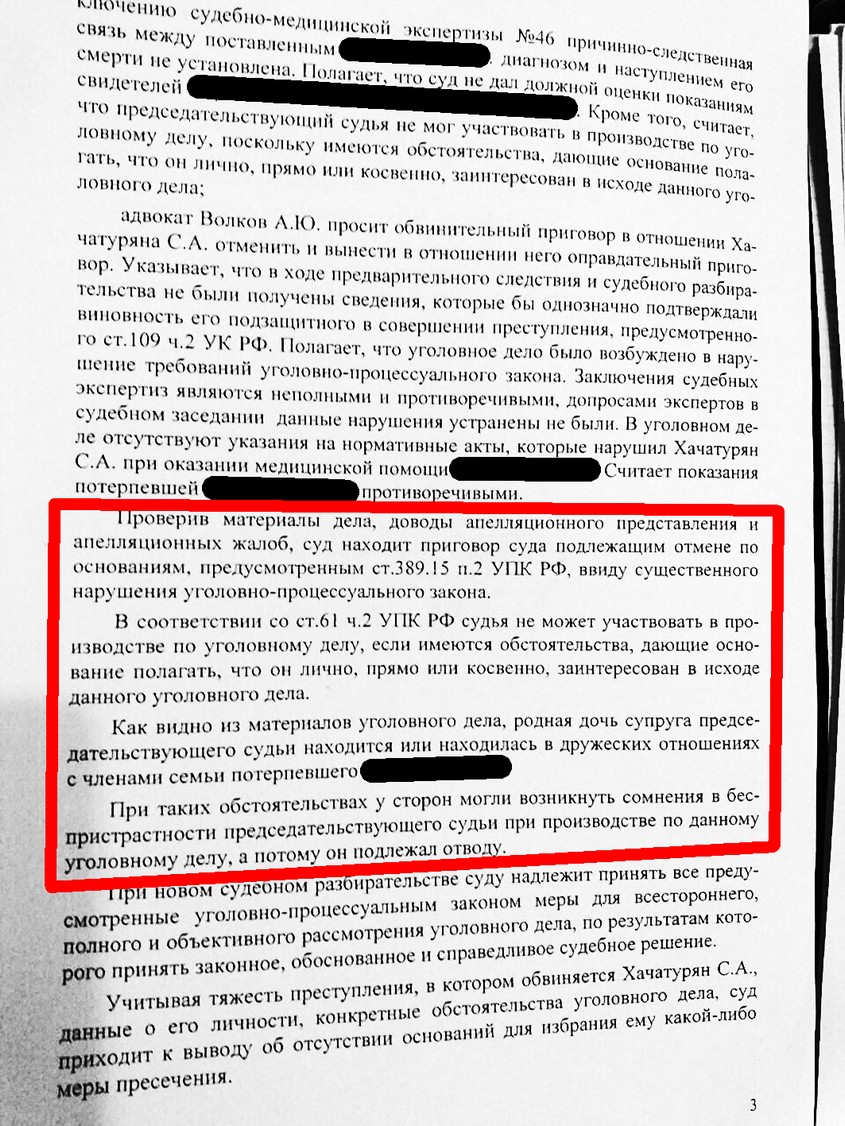 — Я подал апелляцию, где указал на множество процессуальных нарушений в ходе предварительного следствия, судебного процесса. Кроме того, в акте вскрытия пациента стоит другая фамилия, не указаны размеры органов и т. д. К апелляции приложил фотографии, которые подтверждали дружеские отношения судьи с потерпевшими.