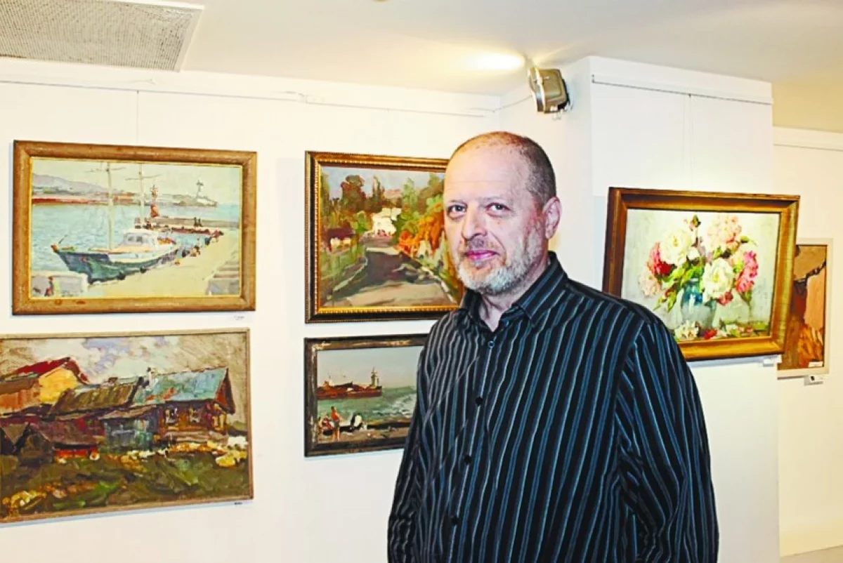 — Для выставки я подбирал картины так, чтобы гармонично смотрелись. Здесь работы разных лет, они разные и по настроению, и по сюжету. Есть Калуга, Питер, дрезденские мотивы, морские. Портретов немного, потому что их пишешь на заказ и отдаёшь, у тебя они не остаются. Но есть портрет отца, он умер в ноябре, я рисовал этот портрет как раз перед его смертью. Очень люблю картину «Дождь» — это улица Плеханова. Картина необычная, экспрессивная, сложная.