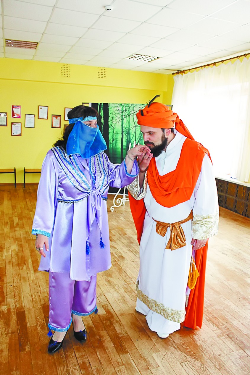 Восточные гости: Шахерезада (Ирина Николаева) и Калиф-аист из сказки Вильгельма Гауфа (Владимир Яценко).