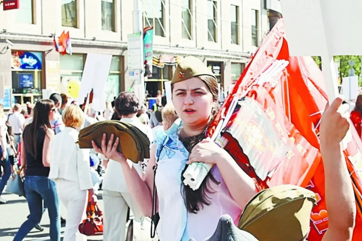 Одним из самых больших огорчений этого Дня Победы для меня стали торгаши в колонне «Бессмертного полка». Парни и девушки с охапкой пилоток и флагов с надписью «С Днём Победы!» заглядывали в глаза участников акции и тоном крымских пляжных продавцов: «Пахлава! Жареные семечки!» — предлагали всем подряд свой товар.
