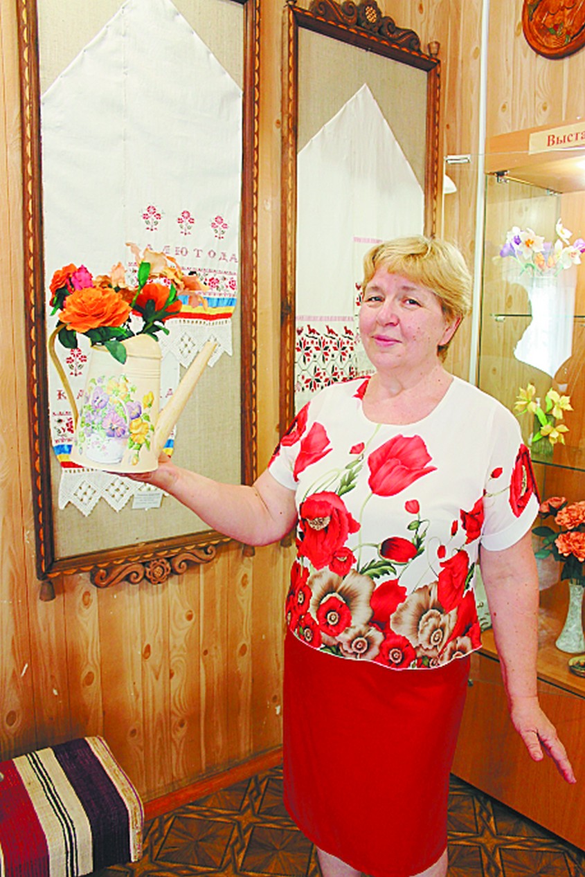 — У нас не только цветы — ещё и плетение из бумажных трубочек, оригами, декупаж, вышивка лентами, — показывает изделия участниц клуба Ольга КОНДРАШОВА. — Сейчас нас захватила цветочная тема. Пока это первые опыты. Клубу «Мастерица» уже 10 лет. Я работаю в Шопинской библиотеке-филиале № 27. Как-то у нас объявили конкурс: надо было смастерить поделки. Стала думать, а что я могу. У меня полно списанных газет — что из них сделаешь? Открыла Интернет, нашла плетение из газетных трубочек. То, что надо! Можно и корзинки делать, и вазочки, и даже декоративные шляпки. Обрабатываются морилкой и лаком. Получаются достаточно долговечными. И мы в библиотеке стали мастерить из этих трубочек. А ведь поделки надо украсить… Узнали о декупаже — и просто заболели им, уже никаких трубочек не надо… А теперь ещё и фоамираном увлеклись. Народу в клубе бывает по-разному. Ленточками занимается столько людей, что мы уже и счёт потеряли! А в цветочной мастерской примерно 10 человек. Кто-то в автобусе разговор услышит — придёт, кто-то подружку приведёт. Мы всем рады!