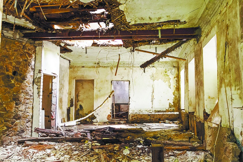 Раньше ведь за деньгами не гнались, поэтому мы и не думали о том, чтобы забрать себе вторую, дядину, половину дома. Если бы знали, что так получится… В 70-е годы дядя умер, а его жена заболела. Детей у них не было. Из Малоярославца приехала её двоюродная сестра и забрала к себе. Там она и умерла, и перед этим сестре свою половину дома переписала. Но ей оказалось ничего не нужно. Так эта вторая половина из рук в руки и переходила. Кто только здесь не жил! Даже вспоминать не хочется… А нынешних хозяев мы и в глаза не видели, понятно только, что они хотят свою часть дома продать: повесили объявление. Посмотрите, как всё разрушается! А ведь это культурное наследие! Потолок сыпется, бомжи здесь лазают. Мы вообще боимся, как бы не подожгли.