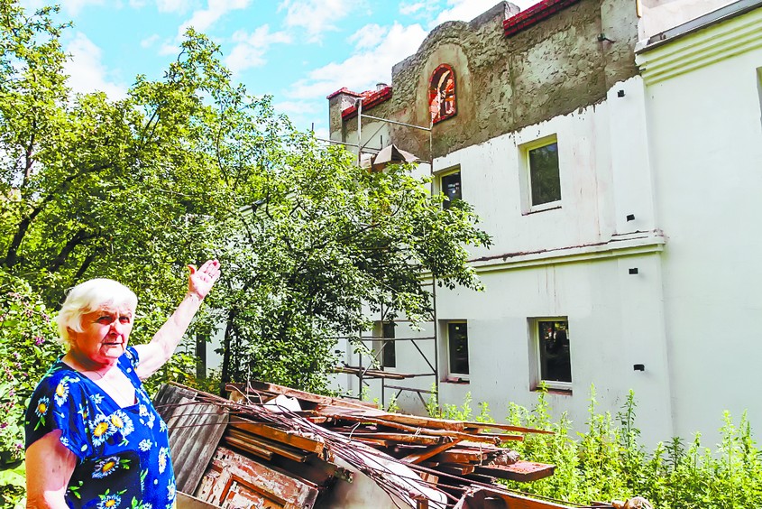 Какой там по кирпичику! Раньше же на века строили, просто так не разберёшь. Здесь дышать нечем было, пыль стояла, вся зелень ею покрылась. Потом котлован вырыли. Почему никто из краеведов, властей города при этом не присутствовал — ведь могли найти какие-то ценные вещи. Это же наша история! От настоящего старинного дома остался только фасад — лицевая часть, которая выходит на ул. Театральную. Я так расстроилась, так переживаю! Стена этого дома была сплошная (у меня даже фотография есть), а сейчас на ней окна сделали. И пристройку соорудили, её тоже раньше не было. Кто дал разрешение на такую переделку? Кроме того, наш сарай снесли, он им мешал, обещали новый построить. Вот уже четвёртый год ничего. И информационной вывески никакой нет: кто строит, что строит, неизвестно — хотя обязательно должна быть. Ничего толком узнать не могу. И вот так строили 3 года, вдруг месяц назад пришли, начали ломать. День ломают, день строят, потом опять ломают и опять строят. Да что ж это такое! Вон наверху окошко сделали. Кто-то ведь должен следить за этим. Почему так безответственно все относятся к объектам культурного наследия?