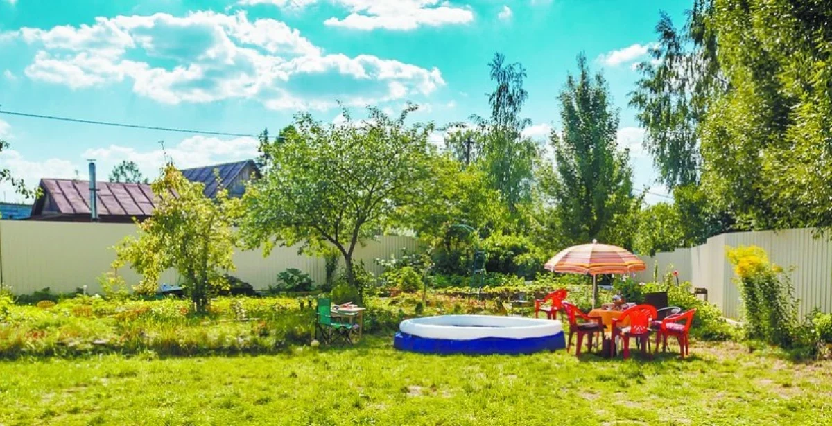 Участок поделён на несколько зон. Есть площадка для семейного отдыха, где размещаются и надувной бассейн, и стол со всевозможными яствами для гостей. Здесь же дети и взрослые могут играть в бадминтон или во что-то ещё. Часть земли отведена под посадки. Но вы не встретите классического картофельного поля, которое занимает большую часть земли, или поликарбонатных теплиц, или парников. Овощные грядки перемешаны с цветами, то тут, то там растут земляника и клубника.