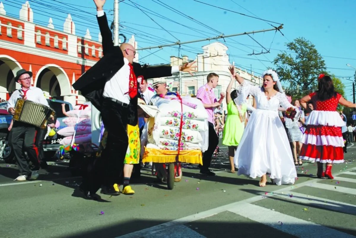 На карнавале в Калуге сыграли три свадьбы