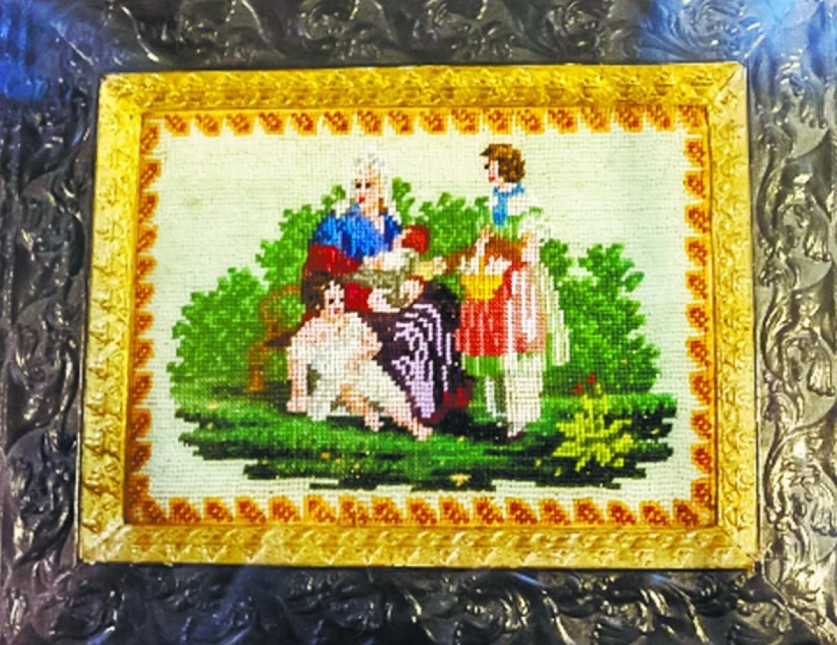 Вышивкой занимались все, даже мужчины. Сюжеты брали европейские: из Франции, Италии. Бисер был очень мелкий, изящный, его буквально под лупой нужно рассматривать. Можно представить, какой тонкой должна быть иголка для вышивания и насколько кропотливая эта работа!