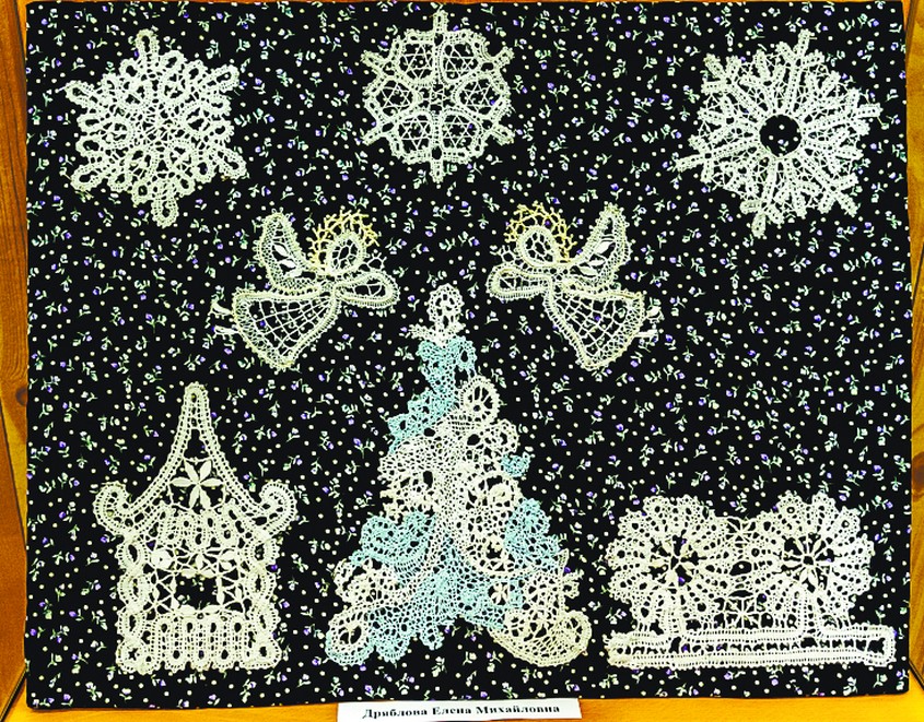 — 20 лет я работала в сельском Доме культуры, перепробовала разные виды рукоделия: занималась лоскутным шитьём, вязала спицами и крючком, кукол делала, да много чего ещё, — рассказывает руководитель кружка «Кружевницы» Елена ДРЯБЛОВА. — А 4 года назад калужский Дом мастеров предложил мне поехать в Смоленск на выставку. Пришлось вставать в 3 утра, чтобы в 5 быть в Калуге, отсюда ещё 5 часов ехали до Смоленска. Я, уже уставшая, захожу, сидит бодрая 85-летняя бабушка — «божий одуванчик» — и плетёт. Она уже и мастер-класс провела, а всё плетёт и плетёт. Так я познакомилась с Валентиной Георгиевной Кунташовой, знаменитой кружевницей. Её в Смоленске обожают. Я смотрела, как она коклюшки перебирает, — просто космос! Думала, что никогда так не смогу. Говорю: «Ой, как мне это нравится!» А она мне: «Садись, плети!» Я попробовала. Мастерица посмотрела и говорит: «У тебя получится». И правда, это оказалось проще, чем крючком вязать!