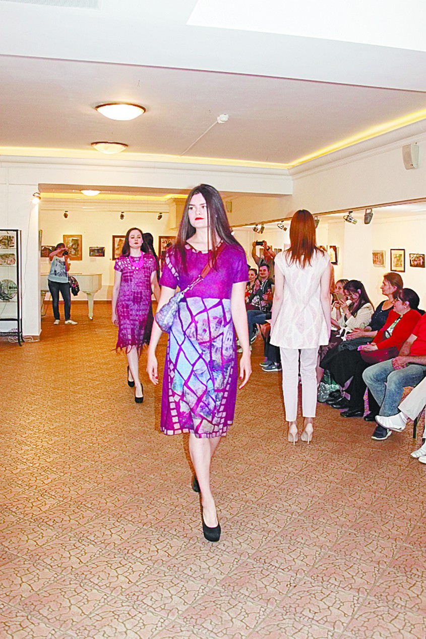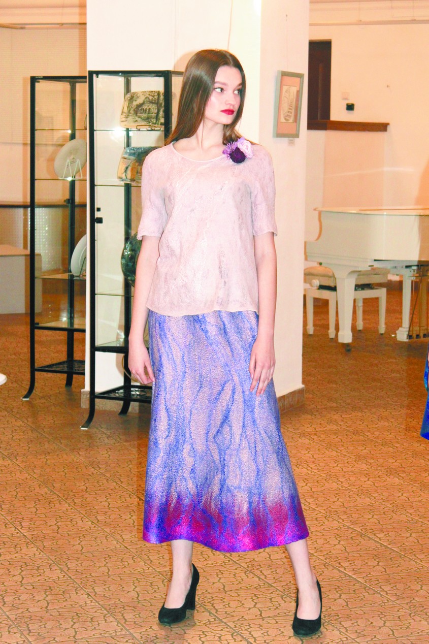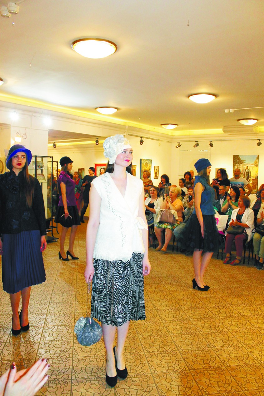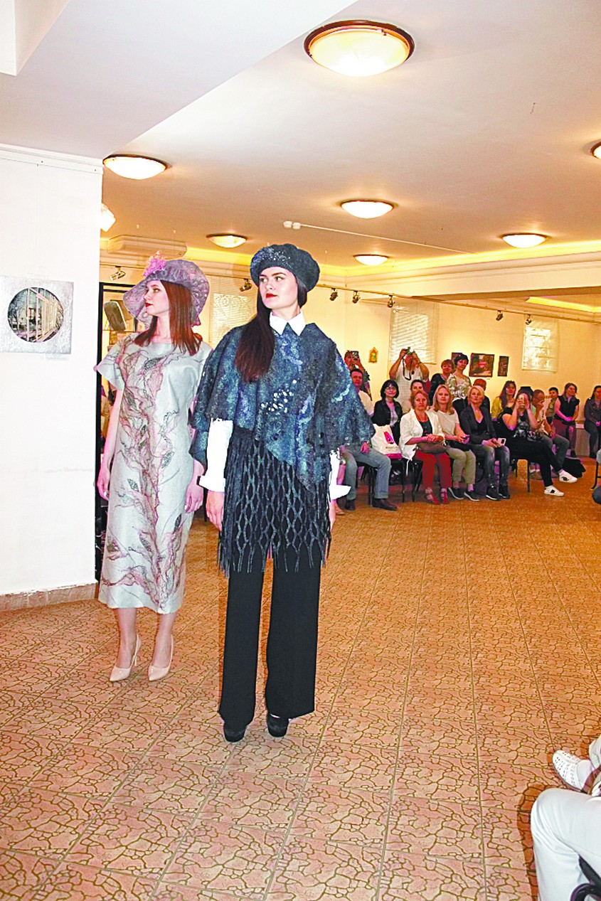 — Сегодня наши мастера подготовили модное дефиле, — открыла вечер руководитель творческой мастерской «Серёна» Нина ДВОРЕЦКАЯ. — Это красивые изделия ручной работы из шерсти и шёлка в стиле фелтинг, нунофелтинг. Показ проходит в Доме музыки, и наши экспонаты оживут с помощью девушек модельного агентства. Тематика Ночи музеев — «Элементы», поэтому наше мероприятие носит название «Модный элемент»: у каждой модели акцент сделан на какой-то свой, оригинальный аксессуар. Дизайнер из Обнинска Любовь РУДОМЁТКИНА назвала коллекцию «Геометрия тепла» и использовала различные техники. Но главное в ней — тепло рук мастера, с любовью создающего каждое изделие. А коллекция «Дыхание весны» калужского дизайнера Татьяны БИРЮКОВОЙ — очень нежная, с нотками романтизма. Большое внимание мастер уделяет деталям. Особым украшением стали авторские головные уборы.