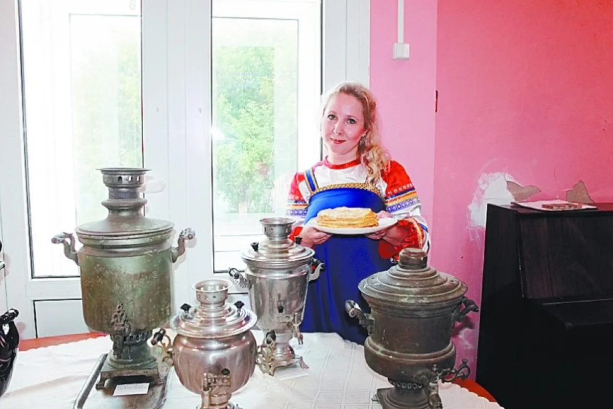 А в холле проходит интересная выставка старинных самоваров. Часть из них принесли наших сотрудники. В моей семье тоже сохранился дровяной самовар, сделанный в Туле. Его покупали ещё мои бабушка с дедушкой. И мы до сих пор пьём из него чай, когда приезжаем в деревню. Закладываем щепочки, растапливаем. Он даже внутри пахнет щепкой. И чай получается особенный, ароматный.