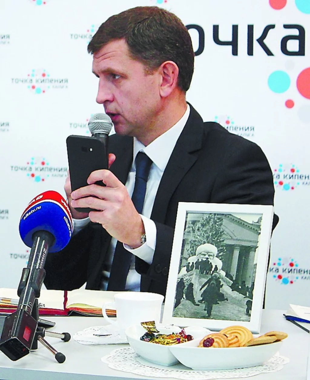 На десерт — вопрос-подарок от журналистов «Перекрёстка». Дарим Разумовскому старое фото, на котором запечатлена горка возле драмтеатра в виде головы Деда Мороза. В 70-е годы прошлого столетия она была одной из главных зимних точек притяжения в городе. Нынче с подобными развлечениями в городе туго. Зимой Калуга представляет собой тоскливое зрелище — и в плане оформления, и в плане досуга. Градоначальник обещает: в этом году станет лучше.