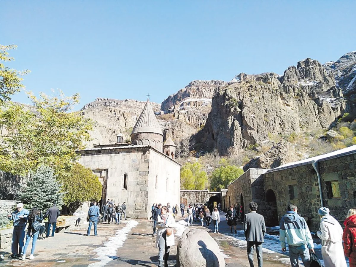 Гегард означает «копьё». По легенде здесь хранилось копьё Лонгина, которым был убит Иисус. Монастырь находится в живописном ущелье, а часть храмов выдолблена в скалах. А ещё на уступах скал находятся хачкары — традиционные армянские стелы с крестами. Причём они стоят в очень труднодоступных местах, и непонятно, как их туда поднимали. Там же находится церковь, которую вырубили в скале на месте древней пещеры с родником, где раньше проходили языческие обряды. Она украшена очень искусной резьбой.