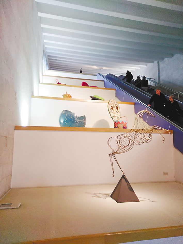 Спуститься с «Каскада» можно на эскалаторе, попутно изучая современное искусство.