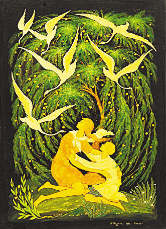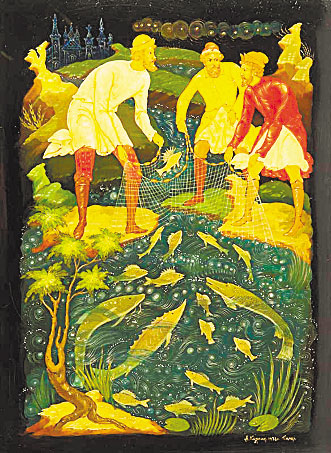 Художники Палеха в большей степени известны как лаковые миниатюристы. Они используют сюжеты былин, басен и сказаний, бытовые сценки.