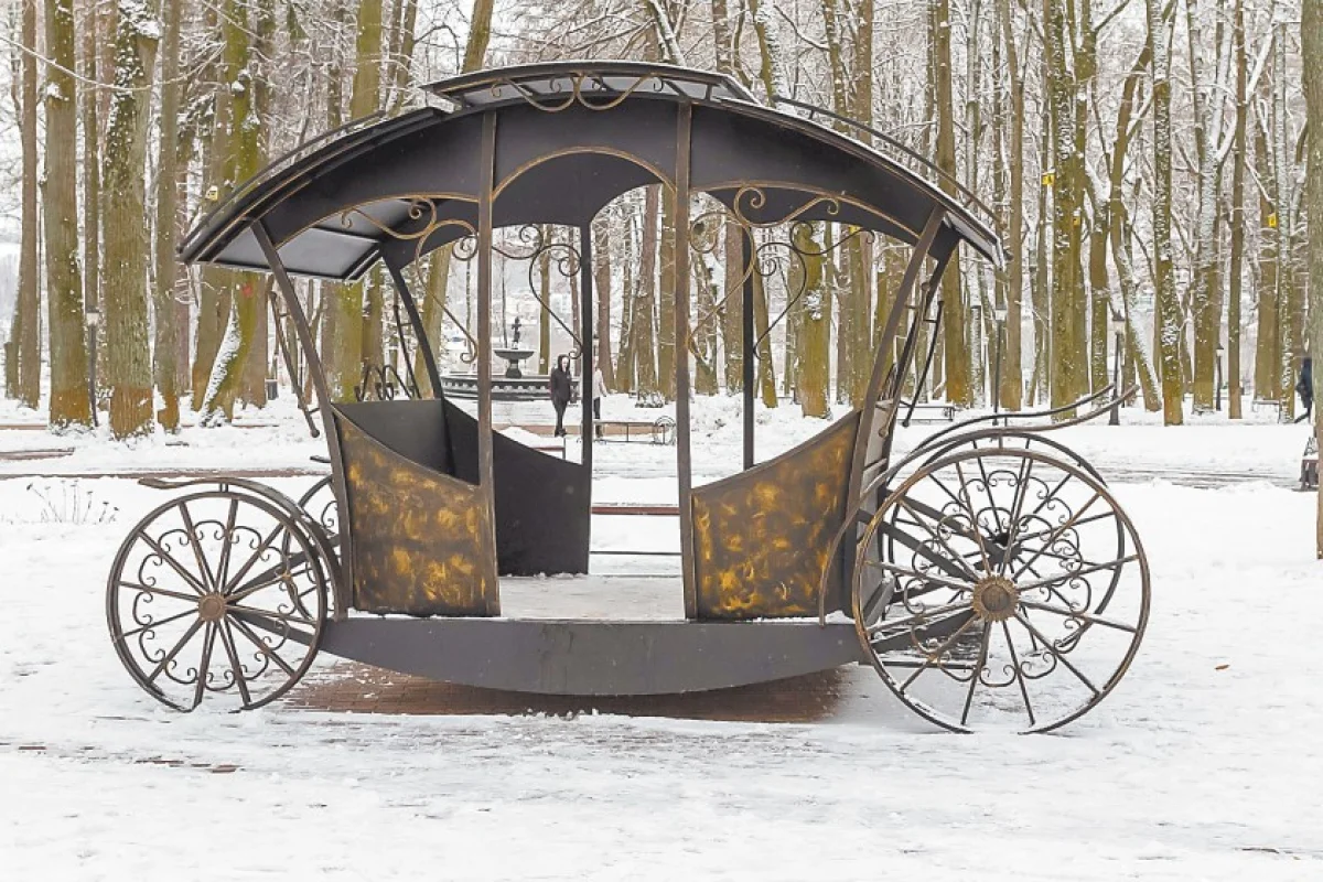 21-го числа в городском парке появилась новая достопримечательность: карета из кованой стали. Длина конструкции — 5 метров, ширина — 2,4 метра.