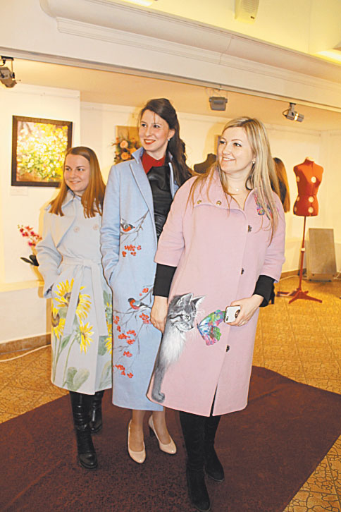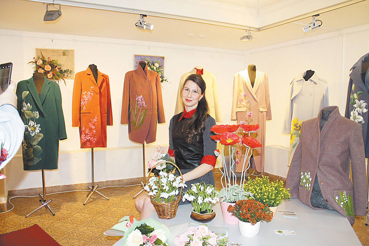 Гиацинты, подснежники, орхидеи, розы, тюльпаны и маки… Цветы здесь были повсюду. Самых причудливых форм и расцветок, в композициях и на картинах, даже в коллекции пальто. Причём авторские модели пальто можно было тут же примерить и сделать фото на импровизированной красной дорожке.