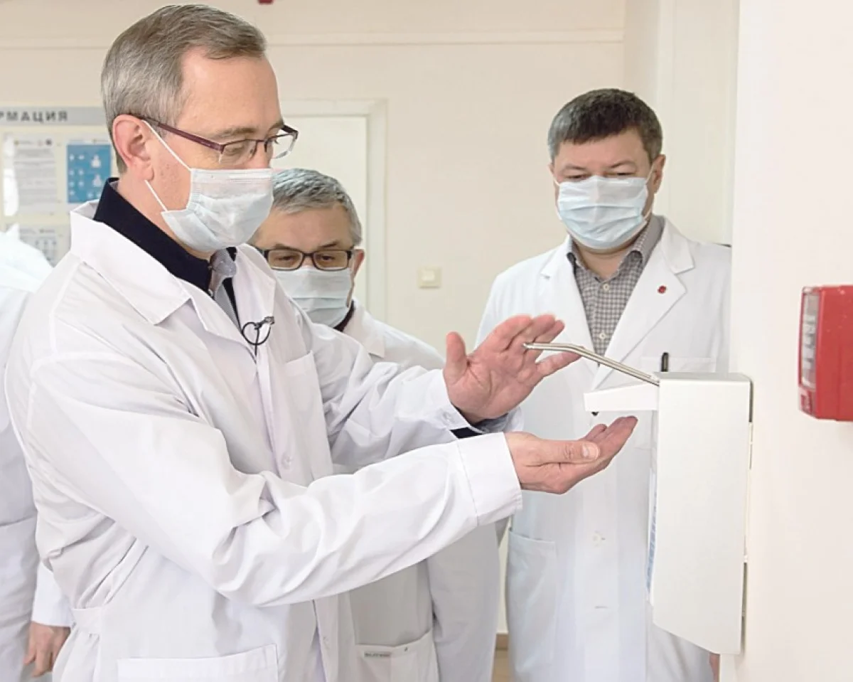В сопровождении директора учреждения Сергея Иванова, главного врача Владимира Петрова и руководства наукограда он познакомился с подготовкой резервных мощностей на случай ухудшения эпидемиологической ситуации, связанной с распространением новой коронавирусной инфекции COVID‑19.