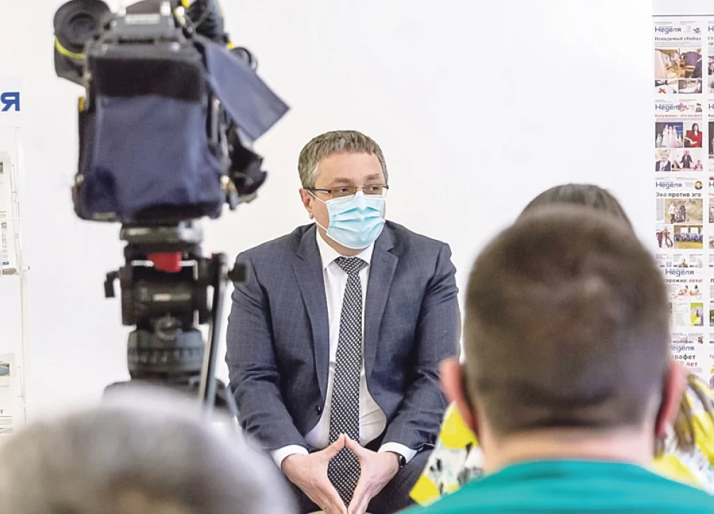 Точно так же встречали каждого журналиста и фотографа. Предварительно всех предупредили, что присутствовать на мероприятии можно только в защитной маске. А вот вопрос соблюдения социальной дистанции организаторы встречи явно не продумали: журналисты, как всегда, сидели довольно плотно. Уже минут через 30 кто-то из наших коллег либо совсем снял маску, либо сдвинул её с носа, чтобы было легче дышать. Дмитрий Денисов продержался в маске всю пресс-конференцию.