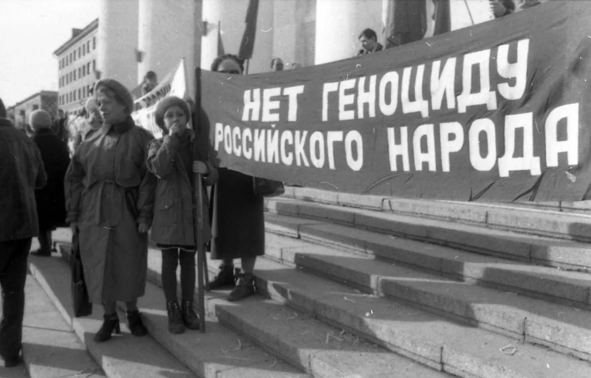 Июль 1999 года. Молодежь устроила массовку у горуправы. О причинах и целях мероприятия сегодня можно только догадываться. Может, просто собрались потусить, может, требовать у чиновников мира во всем мире. Если вдруг вы в курсе - расскажите об этом в комментариях.
