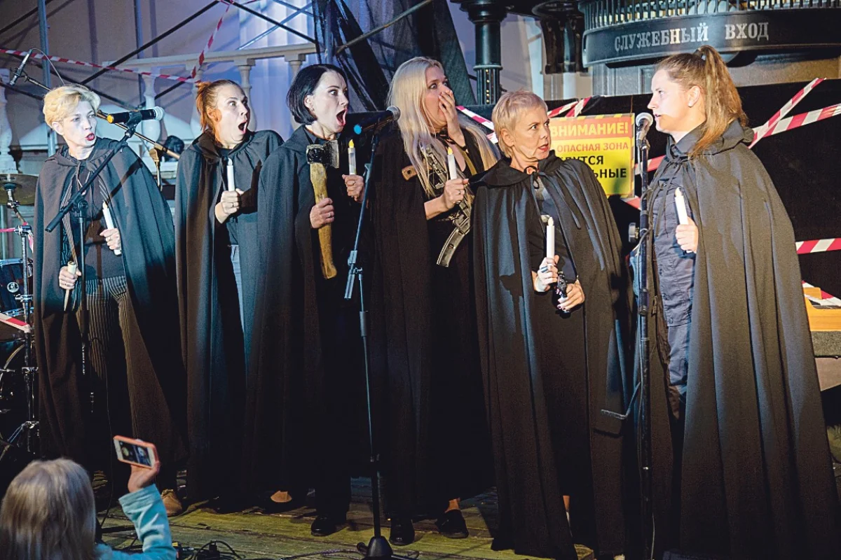 Организаторы остроумно обыграли обе животрепещущие темы этого лета: ремонт и карантин. Строительные леса на один вечер превратили в декорации, газон огородили красной ленточкой, а зрителям предложили в качестве кресел упаковки утеплителя — сидеть на них очень тепло и комфортно.