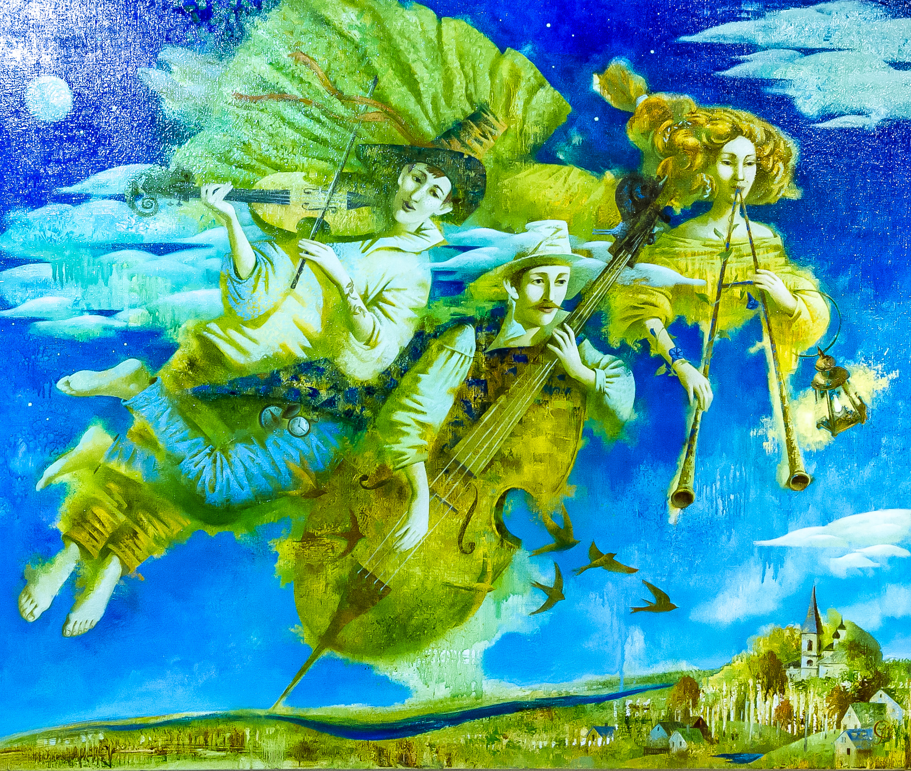 «Летящие над городом музыканты» Марии Самолётовой. Картина о состоянии души и вдохновении.