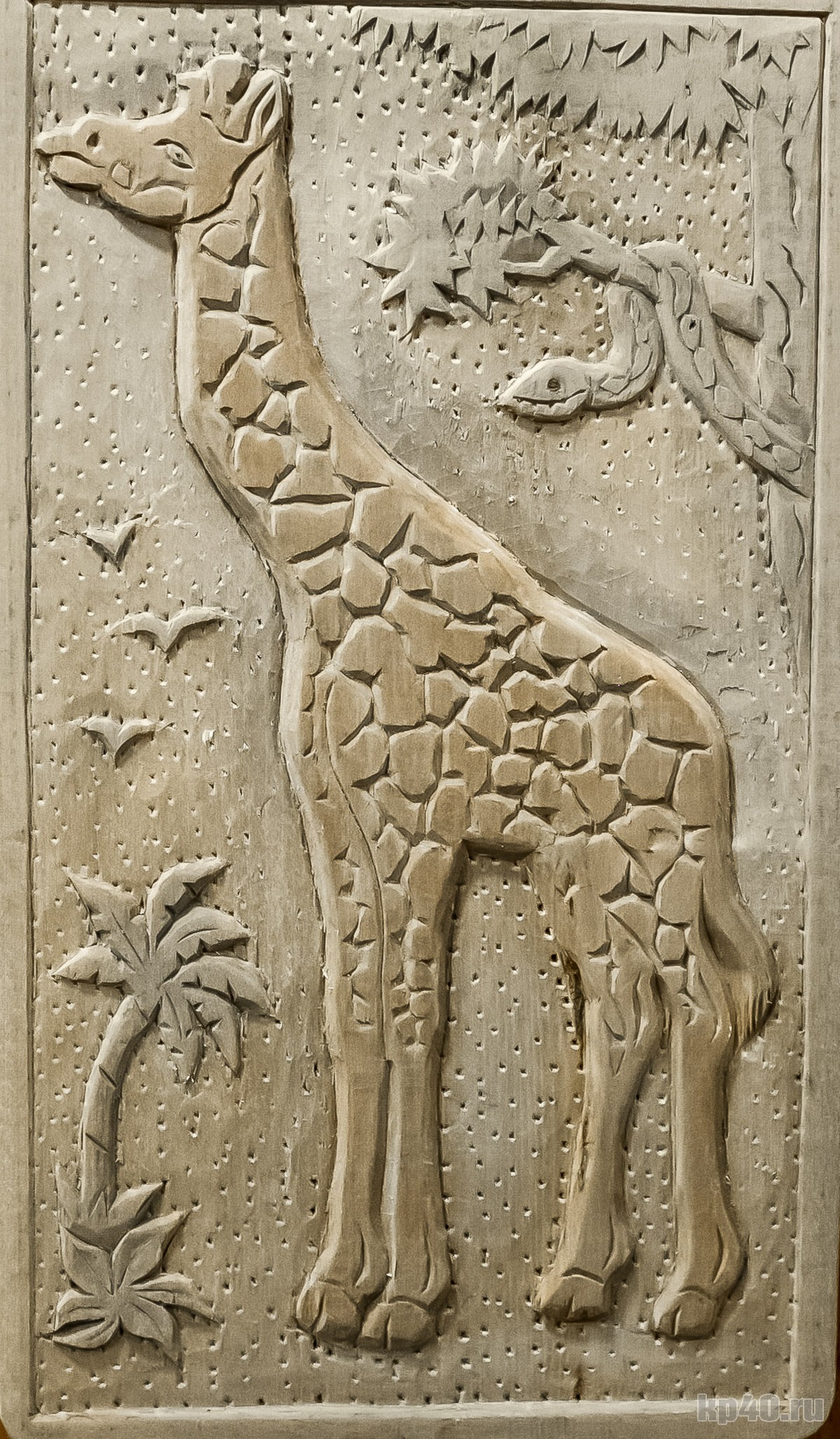 Жираф. Для работы используется липа и сосна. В данном случае – липа.