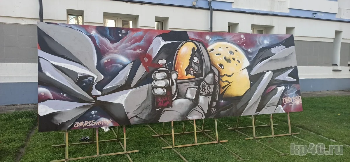 В Калуге я рисовал на космическую тему. Мы с друзьями здесь впервые, провели два дня, много гуляли. Наш проект впервые выехал за пределы Питера. Интерес к нему есть. Стрит-арт сейчас становится модной тенденцией, даже на аукционах такие работы продаются. Но вот новых художников стало меньше, чем в нулевых годах.