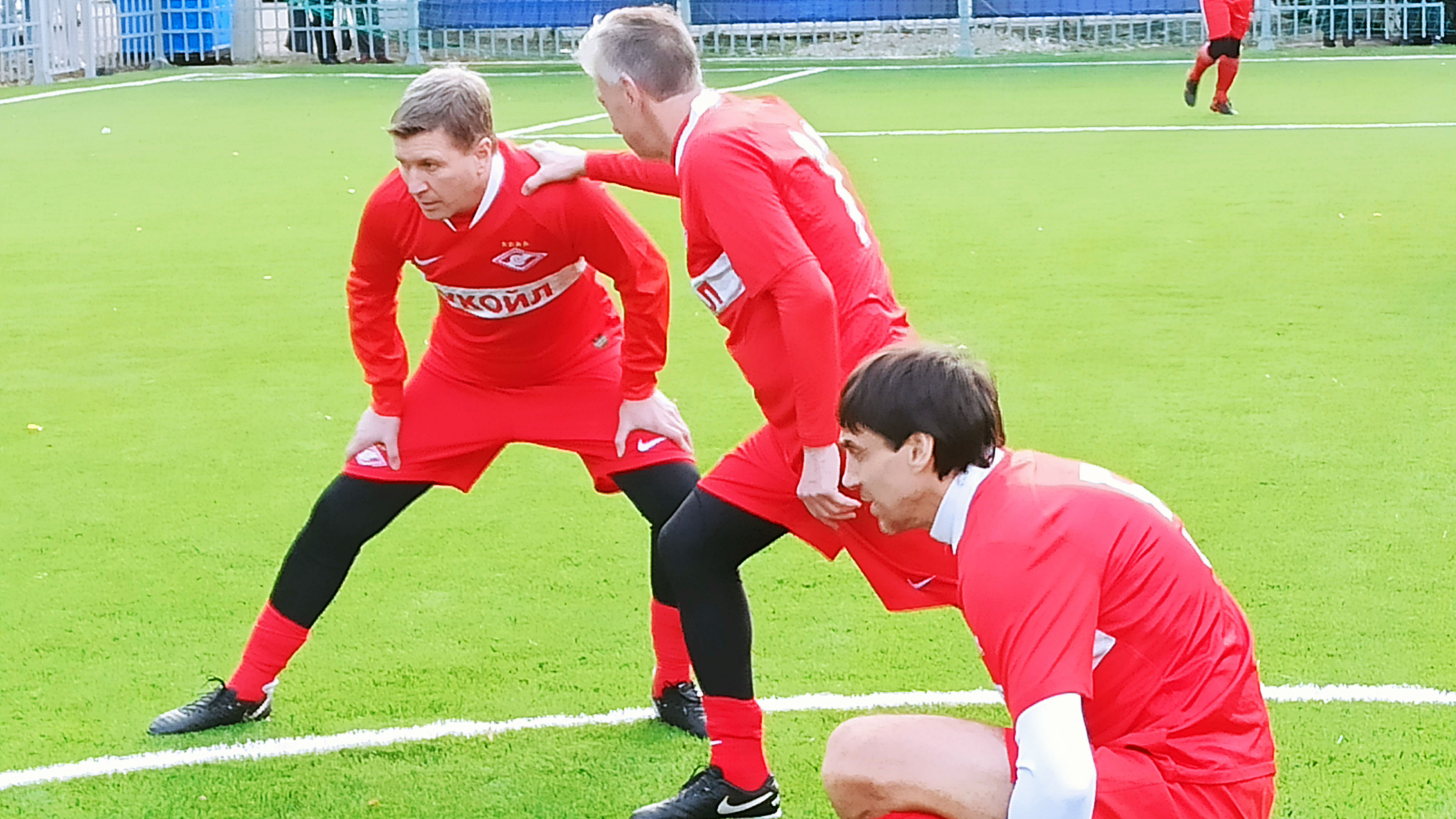 Овациями встретили болельщики вышедших на разминку ветеранов «Спартака». Что не фамилия, то звезда. Валерий Кечинов, Дмитрий Хлестов, Андрей Сметанин, Рамиз Мамедов, Юрий Ковтун, Борис Поздняков, Константин Головской.