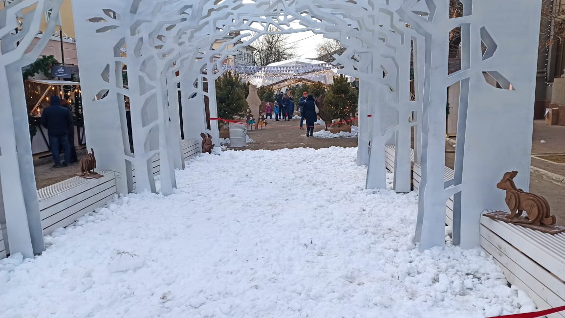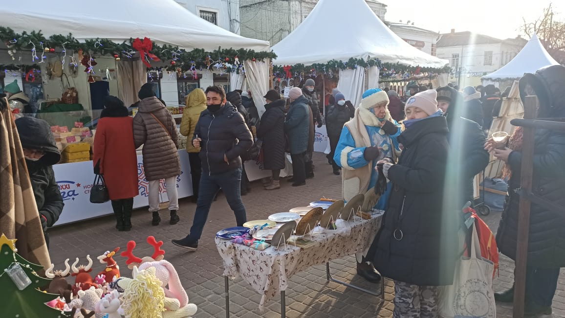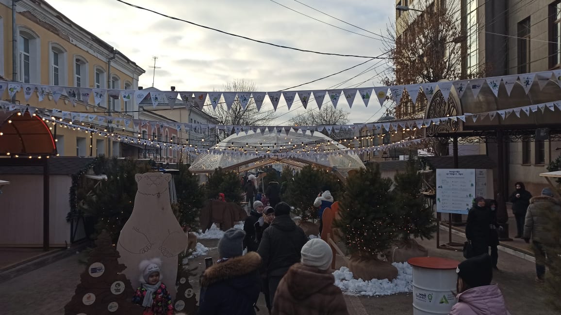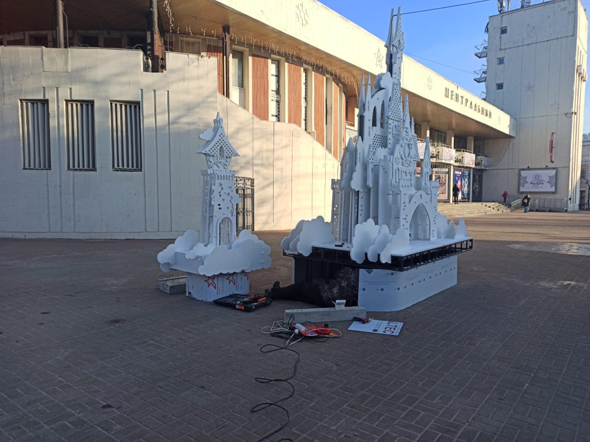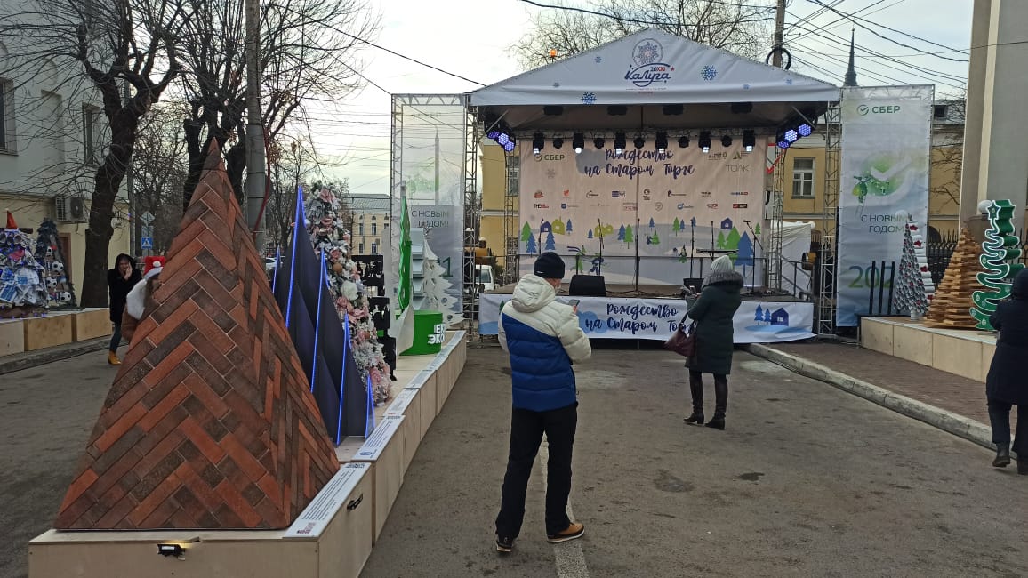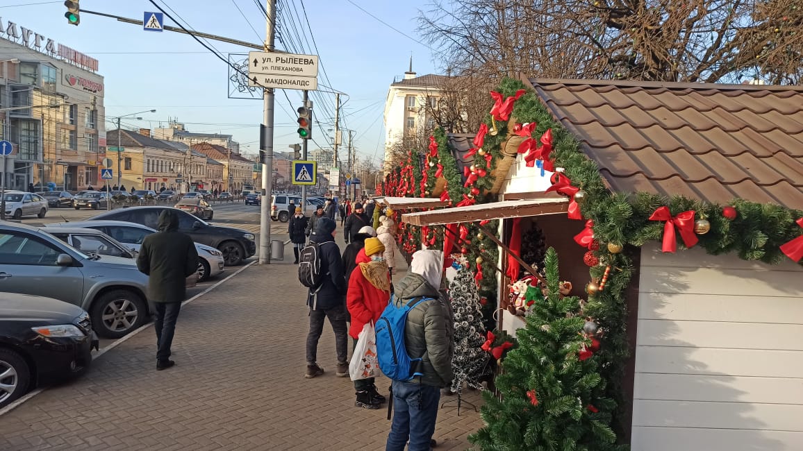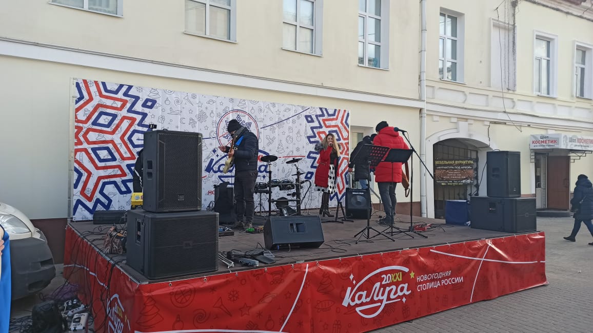 Праздник продолжается. На пешеходной части улицы Театральная проходит ярмарка, установлена рок-сцена. Также идет монтаж подвесных гирлянд.