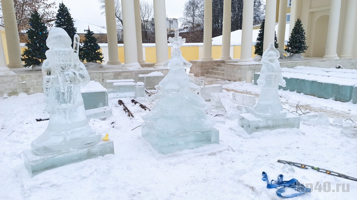 В этом месте туристам и жителям региона, согласно раздаточным материалам визит-центра, была обещана выставка ледяных фигур. Правда, ее до 25 декабря никто из калужан не увидит. Фигуры только создают два скульптора – один из Калуги и один из Курска. Работы будут завершены через полторы недели, а само открытие выставки состоится только 25 декабря.