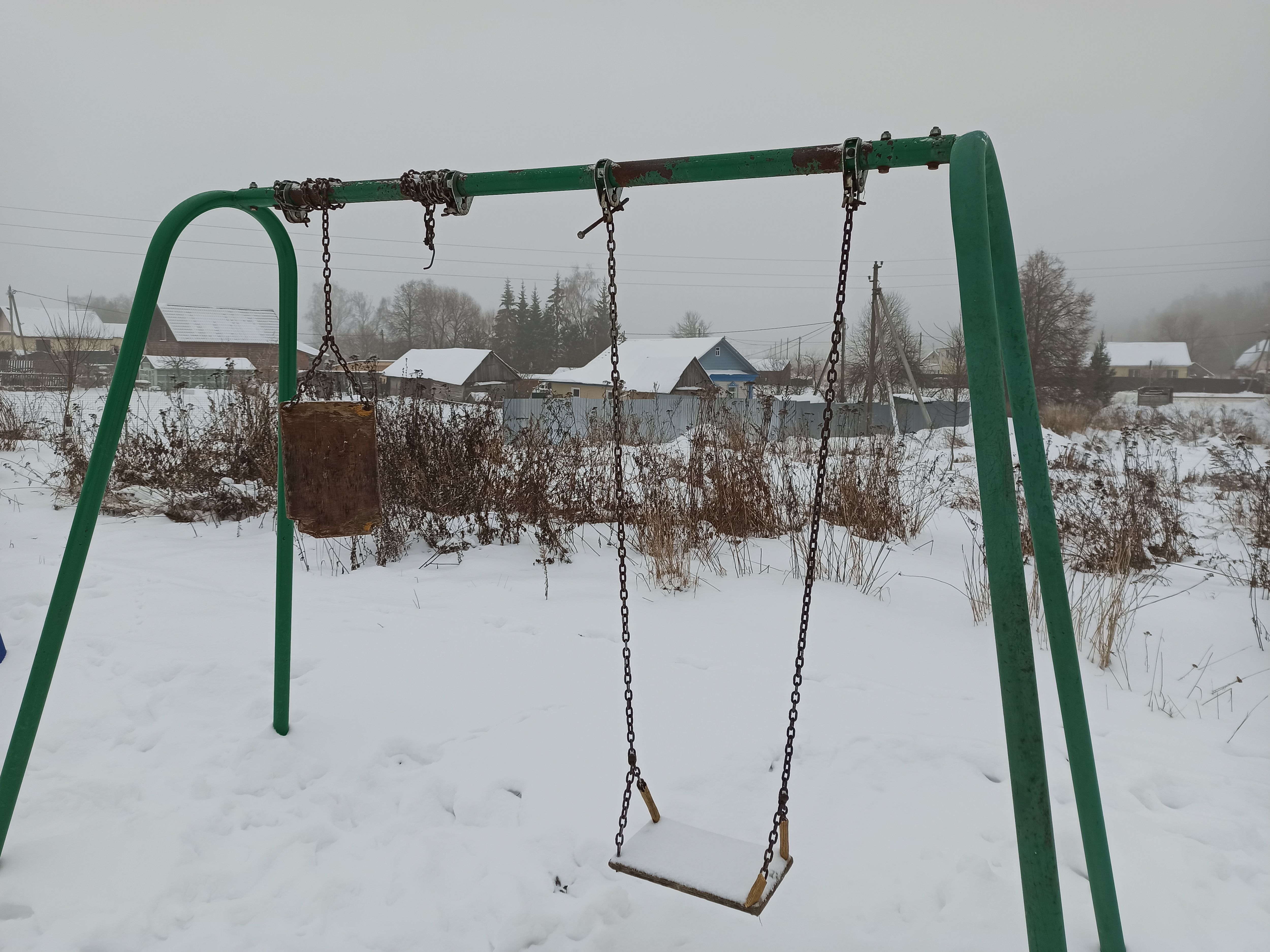 В Центральном микрорайоне Воскресенского три детские площадки. Одна из них заросла бурьяном, на двух других качели и горки постепенно приходят в негодность.